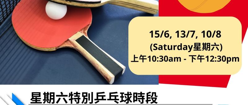 (6月至8月)星期六特別乒乓球時段 Saturday Special Table Tennis Sessions – (June – Aug)