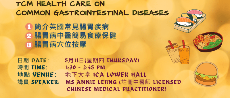 ICA 健康免費講座 – 常見腸胃病中醫養生保健 (會員優先) ICA Free Health Talk – TCM Health Care on Common Gastrointestinal Diseases (Members First)