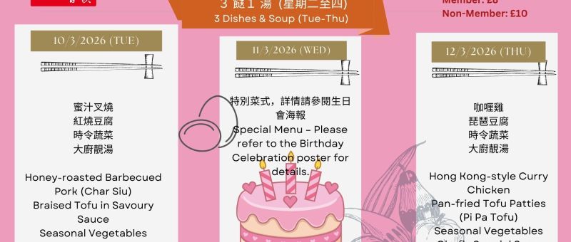 ICA LUNCHEON CLUB 2026 逢星期二、星期三及星期四供應Available every Tuesday, Wednesday & Thursday 📅 下週午餐菜單 Lunch Menu 記得於 當天上午11:30前 WhatsApp 07724 828778 預留位置 😋😋😋Please WhatsApp 07724 828778 before 11:30 am on the day to reserve your seat 😋😋😋 📌 星期二 (10/3) 蜜汁叉燒紅燒豆腐時令蔬菜大廚靚湯 Honey-roasted Barbecued Pork (Char Siu)Braised Tofu in Savoury SauceSeasonal VegetablesChef’s Special Soup 📌 星期三 (11/3) 特別菜式,詳情請參閱生日會海報。…