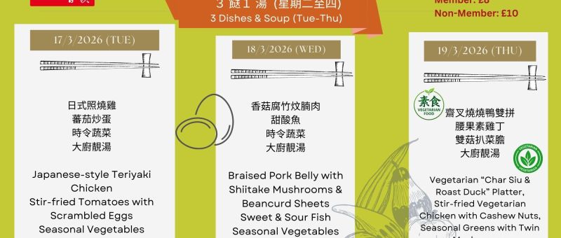 ICA LUNCHEON CLUB 2026 逢星期二、星期三及星期四供應Available every Tuesday, Wednesday & Thursday 📅 下週午餐菜單 Lunch Menu 記得於 當天上午11:30前 WhatsApp 07724 828778 預留位置 😋😋😋 Please WhatsApp 07724 828778 before 11:30 am on the day to reserve your seat 😋😋😋 📌 星期二 (17/3) 日式照燒雞蕃茄炒蛋時令蔬菜大廚靚湯 Japanese-style Teriyaki ChickenStir-fried Tomatoes with Scrambled EggsSeasonal VegetablesChef’s Special Soup 📌 星期三 (18/3) 香菇腐竹炆腩肉甜酸魚時令蔬菜大廚靚湯 Braised…