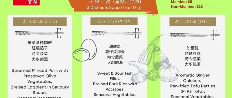 ICA LUNCHEON CLUB 2026 逢星期二、星期三及星期四供應Available every Tuesday, Wednesday & Thursday 📅 下週午餐菜單 Lunch Menu 記得於 當天上午11:30前 WhatsApp 07724 828778 預留位置 😋😋😋Please WhatsApp 07724 828778 before 11:30 am on the day to reserve your seat 😋😋😋 📌 星期二 (21/4)欖菜蒸豬肉餅紅燒茄子時令蔬菜大廚靚湯 Steamed Minced Pork with Preserved Olive VegetablesBraised Eggplant in Savoury SauceSeasonal VegetablesChef’s Soup of the Day 📌…
