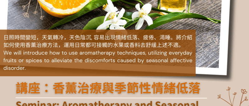 講座:香薰治療與季節性情緒低落 Seminar: Aromatherapy and Seasonal Affective Disorder