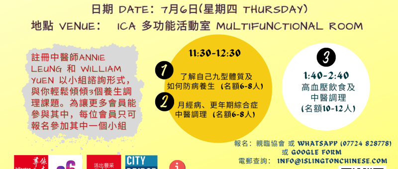 日期Date:2023 年 9 月 30 日 (星期六) 30 September 2023 (Sat)時間Time:2:00pm - 3:30pm (UK)主辦Host:依士靈頓華人協會Islington Chinese Association (ICA) 地點Venue:依士靈頓華人協會地下大廳ICA Lower Hall (地址Address: 21 Hatchard Road, London N19 4NG) 講者Speaker:Bethia Leung (特許公認會計師 Chartered Certified Accountant) 語言Language:廣東話 (配以英文講義) Cantonese (supplemented with powerpoint in English) 費用Fee :免費Free of Charge名額Quota:50 (會員及BNO Visa 持有人優先 Member and BNO Visa Holder First) 報名Registration: Whatsapp…