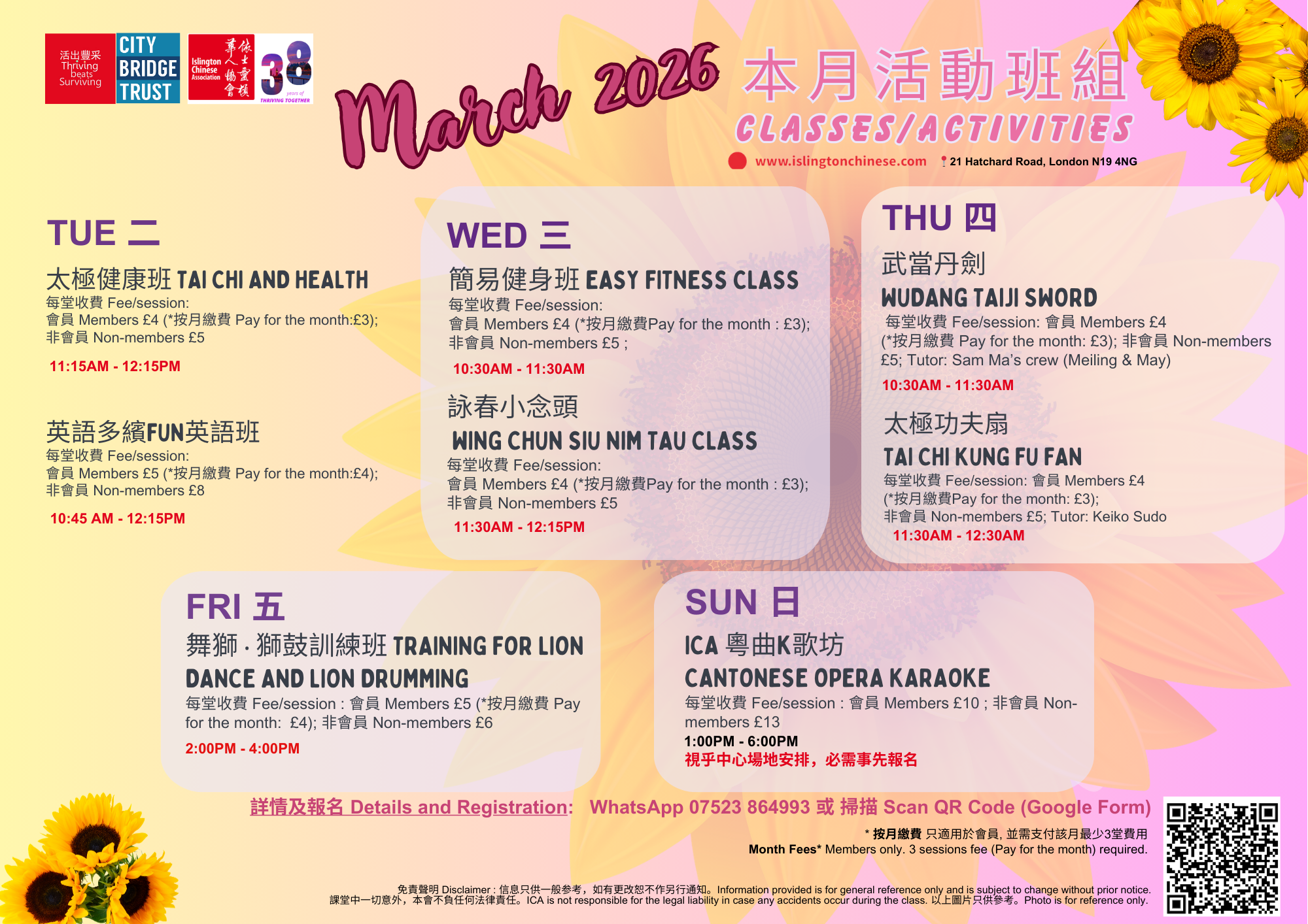 3月活動班組/ March Classes and Activities