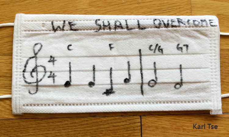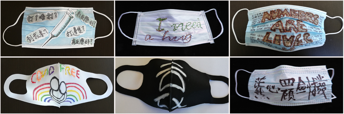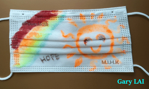 宅家令把我們分隔,在ICA的社群我們卻是一體的。參加者在口罩上畫、寫、縫、貼,盡吐心中情。口罩面積細小,表達的信息自然是作者個人最為關注的。我把口罩作品疊起再合成下面的拼圖作品,以表團結一致與會員間互相支持。過去和往後無論發生甚麼事情,同心使我們更強、更無懼、更有希望。