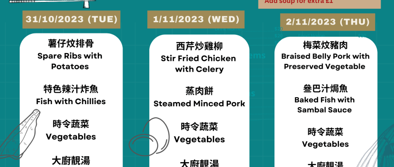 下星期菜單準備好了!當天上午11:30前記得 WhatsApp 07724 828778 留位啦! The latest Lunch Menu is ready! Remember to WhatsApp 07724 828778 and reserve your seat before 11:30 am on the day. 5/3/2024 (星期二 Tue) 豬腩肉煮豆卜 Braised Pork Belly with Fried Bean Curd 蒜香魚塊 Fried Fish with Leeks 時令蔬菜 Vegetables 大廚靚湯 Soup of the Day 6/3/2024 (星期三 Wed) 豉油雞 Chicken in…