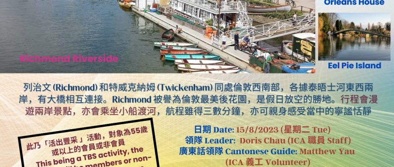 倫敦的夏日你抓緊了多少?可有興趣跟我們一起在泰晤士河東西兩岸的列治文 (Richmond) 和特威克納姆 (Twickenham) 來個慢活漫遊?行程除了參觀兩岸景點,亦會乘坐小船渡河;三數分鐘的航程,足以感受當中的寧謐恬靜,達至洗滌心靈的果效